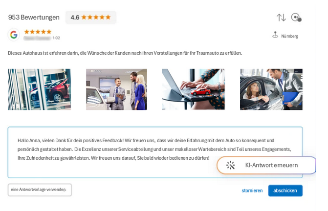 – Reagiere ganz einfach mit Vorlagen und Regeln auf Bewertungen
