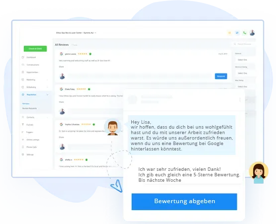 98 % der Kunden lesen Online-Bewertungen, bevor sie ein Produkt kaufen. Eine Online-Bewertungsmanagementplattform hilft Dir, mithilfe von Bewertungen Glaubwürdigkeit bei potenziellen Kunden aufzubauen. Es steigert auch Deine SEO und hilft Dir, mehr Kunden auf Google zu gewinnen.