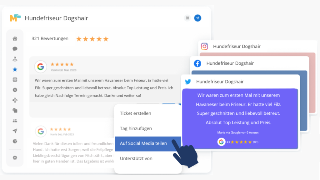 Verwandle Deine Bewertungen mit einem Klick in Social Posts